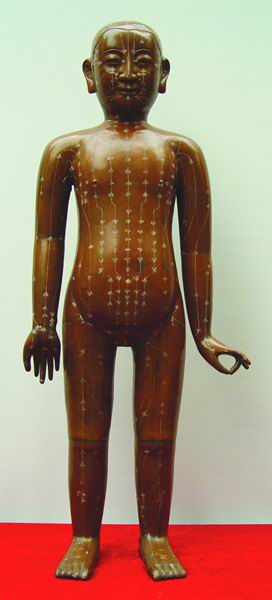 仿制品的穴名及经穴连线涂以白色涂料,较原形圆润丰满,聪慧可爱。
