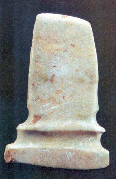 | 简介:商代。1973年河北藁城台西村第14号墓出土。石质。长20cm,最宽处5.4cm。置于一漆盒内。经考证系当时的医疗用具。 |