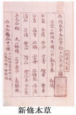 《新修本草》所载药物比《本草经集注》增加114种,使我国本草学著作收载药物品种达844种。在114种新增加的药物中,有37种收入1977年版《中华人民共和国药典》。《新修本草》的分类与《本草经集注》基本一致,但将陶氏七类调整为玉石、草、木、禽兽、虫鱼、果、菜、米谷及有名未用等九类。本书正文部分在《本草经集注》的基础上,加以重新修订改编,校正了若干错误之处,并详述了各药的性味、主治及用法。图谱部分则是根据广泛征集来自全国各地所产地道药材所绘制的药物形态图。图经部分除了对图谱所绘药物形态作了文字说明外,还有采集、炮炙等方面内容。《新修本草》还广泛收载了当时民间的用药经验,如创造性用白锡、银箔、水银合成牙科的填充剂等。