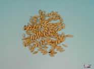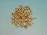 本品呈梭形,长8~12mm,直径3~4mm。表面淡黄色,背面为外稃包围,具5脉;腹面为内稃包围。除去内外稃后,腹面有1条纵沟;基部胚根处生出幼芽及须根,幼芽长披针状条形,长约0.5cm。须根数条,纤细而弯曲。质硬,断面白色,粉性。无臭,味微甘。