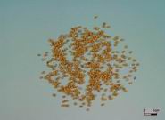 本品呈类圆球形,直径约2mm,顶端钝圆,基部略尖。外壳为革质的稃片,淡黄色,具点状皱纹,下端有初生的细须根,长约3~6mm,剥去稃片,内含淡黄色或黄白色颖果(小米)1粒。无臭,味微甘。