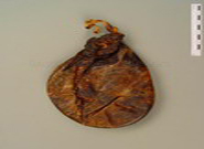 胆囊呈长扁圆形,上部狭细,下部膨大成囊状,长10~20cm,宽5~10cm。表面黑色、棕黑色或黄棕色,显光泽,微有皱褶。囊内有干燥的胆汁,习称“胆仁”,呈块状、颗粒状或粉末,金黄色,透明如琥珀,有光泽,质松脆者习称“金胆”或“铜胆”;黑色、质坚脆或呈膏状者习称“墨胆”或“铁胆”;黄绿色、光泽较差、质脆者称“菜花胆”。气清香,味极苦,有粘舌感。
