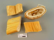鲜芦根:呈长圆柱形,有的略扁,长短不一,直径1~2cm。表面黄白色,有光泽,外皮疏松可剥离,节呈环状,有残根及芽痕。体轻,质韧,不易折断。切断面黄白色,中空,壁厚1~2mm,有小孔排列成环。无臭,味甘。