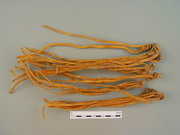 坚龙胆:表面无横皱纹,外皮膜质,易脱落,木部黄白色,易与皮部分离。 |