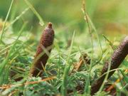 子座呈线状,不分枝或分枝,长10~30cm,直径0.1cm~0.2cm;头部稍膨大,表面灰褐色。柄部极长,多弯曲,有细纵皱纹,棕褐色,质柔韧。