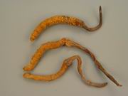 麦角菌科真菌冬虫夏草Cordyceps sinensis (Berk.) Sacc.寄生在蝙蝠蛾科昆虫幼虫的子座及幼虫尸体的复合体。