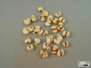 呈宽卵形,长0.4~0.5cm,宽0.4~0.6cm。表面乳白色,略透明,光滑,偶有残存的红棕色种皮。两端平截,一端有棕黑色点状种脐。背面圆凸,腹面有1条宽而深的纵沟。