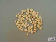 呈近扁圆形,两侧略隆起。直径0.4cm。乳白色,残存种皮浅黄棕色,一侧具浅凹痕,浅凹痕约为直径的1/2,色较深,另一侧光滑。