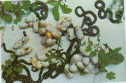 剖开蛇腹,除去内脏,擦净血迹,用乙醇浸泡处理后,盘成圆形,用竹签固定,干燥。
