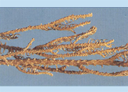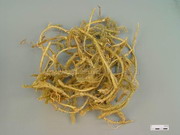 本品匍匐茎呈细圆柱形,略弯曲,长可达2m,直径1~3mm,其下有黄白色细根;直立茎作二叉状分枝。叶密生茎上,螺旋状排列,皱缩弯曲,线形或针形,长3~5mm,黄绿色至淡黄棕色,无毛,先端芒状,全缘,易碎断。质柔软,断面皮部浅黄色,木部类白色。无臭,味淡。 |