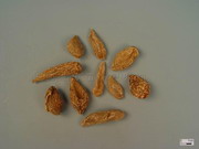 桂郁金:呈长圆锥形或长圆形,长2~6.5cm,直径1~1.8cm。表面具疏浅纵纹或较粗糙网状皱纹。气味微辛苦。