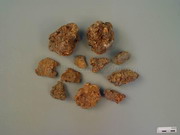 干燥的胶树脂呈不规则颗粒状或粘结成团块,大小不一,一般直径约2.5cm,有的可达10cm,红棕色或黄棕色,表面粗糙,覆有粉尘。质坚脆,破碎面呈不规则颗粒状,带棕色油样光泽,并伴有白色小点或线纹,薄片半透明。气微弱而芳香,味苦微辛。