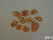 蓬莪术:呈卵圆形、长卵形、圆锥形或长纺锤形,顶端多钝尖,基部钝圆,长2~8cm,直径1.5~4cm。表面灰黄色至灰棕色,上部环节凸起,有圆形微凹的须根痕或有残留的须根,有的两侧各有1列下陷的芽痕和类圆形的侧生根茎痕,有的可见刀削痕。体重,质坚实,断面灰褐色至蓝褐色,蜡样,常附有灰棕色粉末,皮层与中柱易分离,内皮层环纹棕褐色。气微香,味微苦而辛。