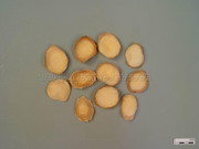 本品呈圆锥形,略扁,长2~6cm,直径2~4cm。表面黄白色或灰黄色,有刀削痕,须根痕小点状,略呈横向环状排列。体重,质坚实。无臭,味淡,嚼之微有麻辣感。