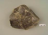 呈不规则块状,常破裂为多角形,大小不一。表面呈暗红褐色或深褐色,质硬,不易破碎,断面粗糙或显麻纹。富吸湿性。有特殊臭气,味极苦。