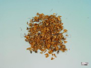 槐米:呈卵形或椭圆形,长2~6mm,直径约2mm。花萼下部有数条纵纹。萼的上方为黄白色未开展的花瓣。花梗细小。体轻,手捻即碎。无臭,味微苦涩。
