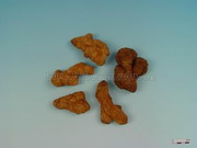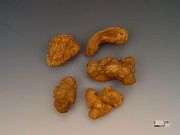 本品呈不规则膨胀的块状,具指状分枝。表面棕黑色或棕褐色。质轻泡,断面边缘处显棕黑色,中心棕黄色,细颗粒性,维管束散在。气香、特异,味微辛、辣。