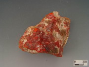本品为粒状或块状集合体,呈颗粒状或块片状。鲜红色或暗红色,条痕红色至褐红色,具光泽。体重,质脆,片状者易破碎,粉末状者有闪烁的光泽。无臭,无味。