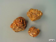 本品为球形颗粒压结成的团块,大小不等,外面红棕色至灰棕色,嵌有黄白色及灰白色不透明的杏仁样颗粒,表面粗糙不平坦。常温下质坚脆,加热即软化。气芳香、味微辛。