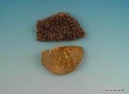 干燥的皮呈多角形板刷状或直条状,有的边缘卷曲成筒状或盘状,长约3~4cm。外表面密生错综交插的棘刺,刺长1.5~2cm,坚硬如针,灰白色、黄色或灰褐色不一。在腹部的皮上多有灰褐色软毛。皮内面灰白色或棕褐色,留有筋肉残痕。具特殊腥臭气。