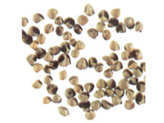 本品呈类球形,直径1~1.5mm。表面灰棕色或黄棕色,具细密突起的小点,一端有微凹的线形种脐。质坚实,不以以指甲压碎。气微,味淡。
