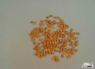 本品略呈斜方形或矩形,长3~4mm,宽2~3mm,厚约2mm。表面黄绿色或黄棕色,平滑,两侧各具一深斜沟,相交处有点状种脐。质坚硬,不易破碎。种皮薄,胚乳呈半透明状,具黏性;子叶2,淡黄色,胚根弯曲,肥大而长。气香,味微苦。