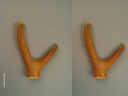 花鹿茸呈圆柱状分枝,具一个分枝者习称“二杠”,主枝习称“大挺”,长17~20cm,锯口直径4~5cm,离锯口约1cm处分出侧枝,习称“门庄”,长9~15cm,直径较大挺略细。外皮红棕色或棕色,多光润,表面密生红黄色或棕黄色细茸毛,上端较密,下端较疏;分岔间具1条灰黑色筋脉,皮茸紧贴。锯口黄白色,外围无骨质,中部密布细孔。体轻。气微腥,味微咸。具二个分枝者,习称“三岔”,大挺长23~33cm,直径较二杠细,略呈弓形,微扁,枝端略尖,下部多有纵棱筋及突起疙瘩;皮红黄色,茸毛较稀而粗。