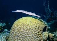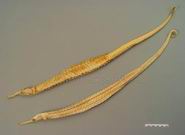 拟海龙:体长平扁,躯干部略呈四棱形,全长20~22cm。表面灰黄色。头部常与体轴成一直线。