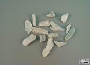 本品为长柱状、针状或纤维状集合体,呈不规则块状、扁长条状或短柱状。大小不一。白色、浅灰白色或淡绿白色,具丝样光泽。体较重,质较重,质较硬脆,有的略疏松。可折断,碎断面不整齐,纵面呈纤维状或细柱状。气无,味淡。