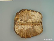本品呈椭圆形或卵圆形,嘴面隆起,长10~15cm,宽9~14cm。外表面黑褐色或墨绿色。略泽,具细网状皱纹及灰黄色或灰白色斑点,中间有一条纵棱,两侧各有左右对称的横凹纹8条,外皮脱落后,可见锯齿状嵌接缝。内表面类白色,中部有突起的脊椎骨,颈骨向内卷曲,两侧各有肋骨8条,伸出边缘。质坚硬。气微腥,味淡。