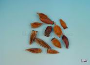 本品为花托发育而成的假果,呈倒卵形,长2~3.5cm,,直径1~2cm。表面红黄色或红棕色,有突起的棕色小点,系毛刺脱落后的残基。顶端有盘状花萼残基,中央有黄色柱基,下部渐尖。质硬。切开后,花托壁厚1~2mm,内有多数坚硬的小瘦果,内壁及瘦果均有淡黄色绒毛。无臭,味甘、微涩。