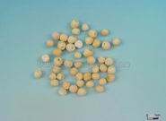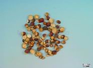 本品呈类球形,多为破粒,完整者直径5~8mm。表面有棕红色内种皮,一端黄白色,约占全体1/3,有凹点状的种脐痕,除去内种皮显白色。质较硬,断面白色,粉性。无臭,味淡。
