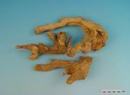 本品呈圆柱形,常弯曲扭转,或有分枝,长9~15cm,直径0.5~2cm。表面棕黄色,具细纵纹,外皮易剥落,剥落处露出淡黄色木部。质坚硬;不易折断,折断时有粉尘飞扬;横切面黄白色,射线类白色,呈放射状。无臭,味苦。