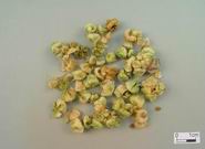 种子呈圆形扁平之橘瓣状,或微呈肾形,细小,直径约1.5~2mm,较薄的一边中央凹下,外表为棕黄色的包壳(果皮),具环形细皱纹,搓去皮壳后,种子呈棕褐色。质坚硬,破碎后微有香味。