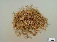茎略呈四棱柱状,光滑,粗约1.5毫米,外表淡黄棕色或暗红棕色,节间长约1~2cm,易折断。叶片黄褐色或灰青色,皱缩,纸质,易碎,以放大镜观之,有细小透明油点。花序多折断而不完整,花萼花瓣干缩,黄棕色,或脱落,雄蕊仅存花丝,子房甚小,易脱落。蒴果红棕色,长卵形,多裂成3瓣,顶端喙尖,种子细小,多数;不成熟的果实,尚残存破碎的花萼、花瓣及少数花蕊。气微,味淡。