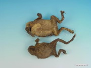 洗净,挤取耳后腺及皮肤腺的白色浆液,加工,干燥。