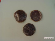 本品呈扁圆形块状或片状。棕褐色或红棕色。团块状者质坚,不易折断,断面棕褐色,角质状,微有光泽;片状者质脆,易碎,断面红棕色,半透明。气微腥,味初甜而后有持久的麻辣感,粉末嗅之作嚏。