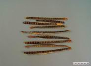 本品呈扁平长条形,长9~15cm,宽0.5~lcm。由头部和躯干部组成,全体共22个环节。部暗红色或红褐色,略有光泽,有头板覆盖,头板近圆形,前端稍突出,两侧贴有颚肢一对,前端两侧有触角一对。躯干部第一背板与头板同色,其余20个背板为棕绿色或墨绿色,具光泽,自第四背板至第二十背板上常有两条纵沟线;腹部淡黄色或棕黄色,皱缩;自第二节起,每节两侧有步足一对;步足黄色或红褐色,偶有黄白色,呈弯钩形,最末一对步足尾状,故又称尾足,易脱落。质脆,断面有裂隙。气微腥,有特殊刺鼻的臭气,味辛、微咸。