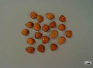 本品呈扁心形,长1~1.9cm,宽0.8~1.5cm,厚0.5~0.8cm。表面黄棕色至深棕色,一端尖,另端钝圆,肥厚,左右不对称。尖端一侧有短线形种脐,圆端合点处向上具多数深棕色的脉纹。种皮薄,子叶2,乳白色,富油性。无臭,味苦。