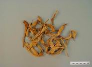 本品多皱缩成条状,完整者长9~15cm。花萼呈筒状,长为花冠的2/5,灰绿色或灰黄色,先端5裂,基部具纵脉纹5条,表面微有茸毛;花冠呈喇叭状,淡黄色或黄棕色,先端5浅裂,裂片有短尖,短尖下有明显的纵脉纹3条,两裂片之间微凹;雄蕊5,花丝贴生于花冠筒内,长为花冠的3/4;雌蕊1,柱头棒状。烘干品质柔韧,气特异;晒干品质脆,气微,味微苦。